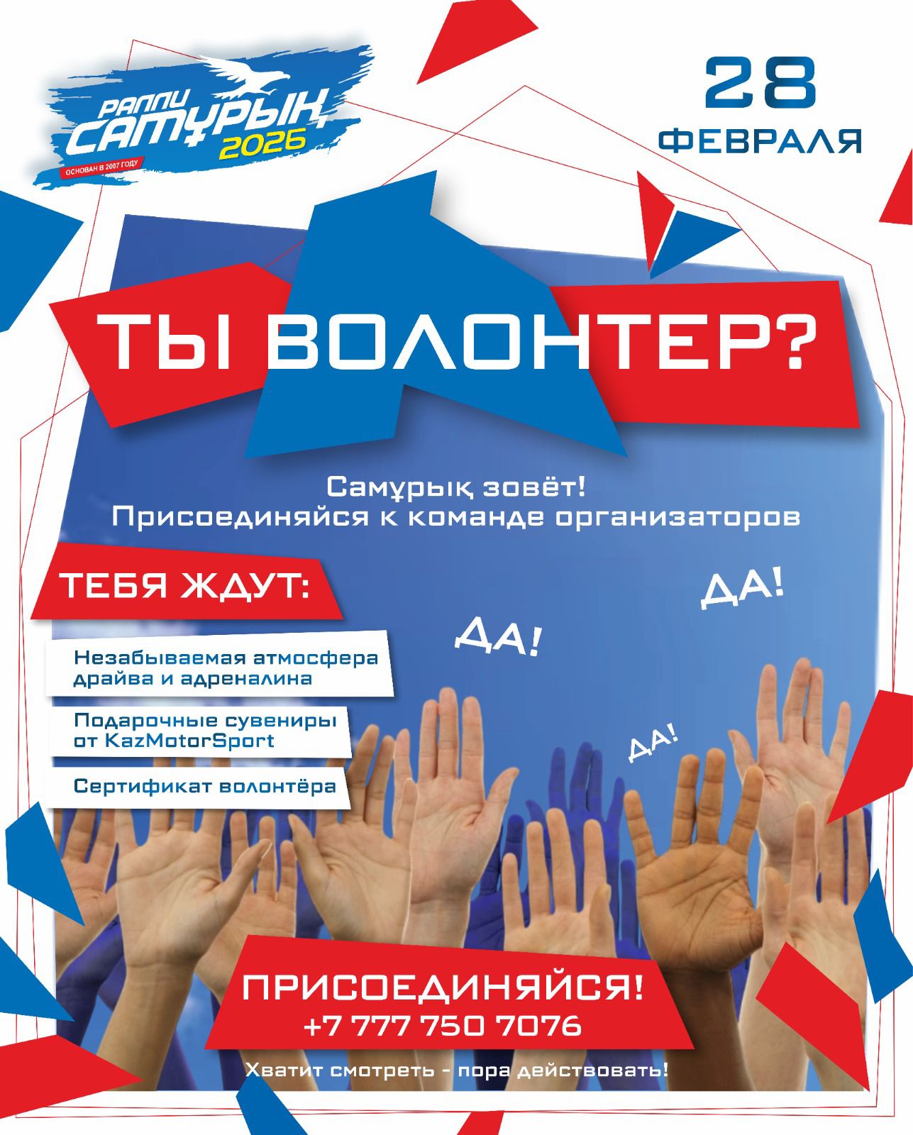 И прямо сейчас команда организаторов Самұрық объявляет набор волонтёров, готовых стать частью этого яркого автоспортивного шоу.